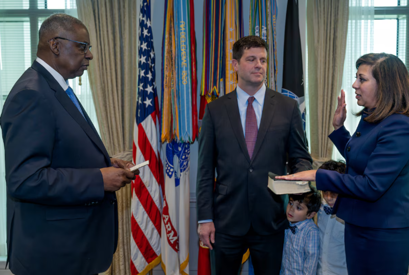 ARLINGTON, Va. – In a ceremony held today at the Pentagon, Dr. Radha Plumb was officially sworn in as the Department of Defense (DoD) Chief Digital and Artificial Intelligence Officer (CDAO). Secretary of Defense Lloyd J. Austin III administered the oath of office to Plumb with family and colleagues in attendance. Plumb most recently served as the Deputy Under Secretary of Defense for Acquisition and Sustainment.